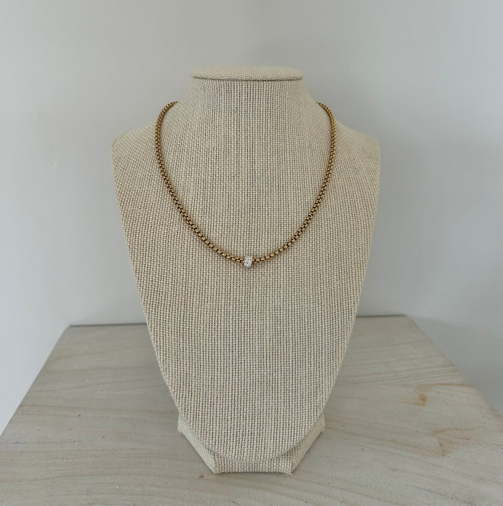 Simple and stunning. 18ct gold over stainless steel chain with crystal sparkle bead. This one is timeless.