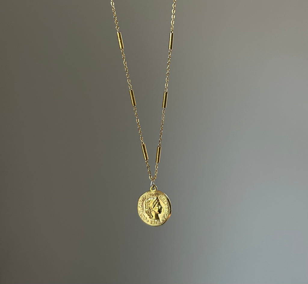 This is for those that want a delicate chain with a coin pendant. Perfect on its own or layered with other necklaces. Long lasting 18ct gold over stainless steel.